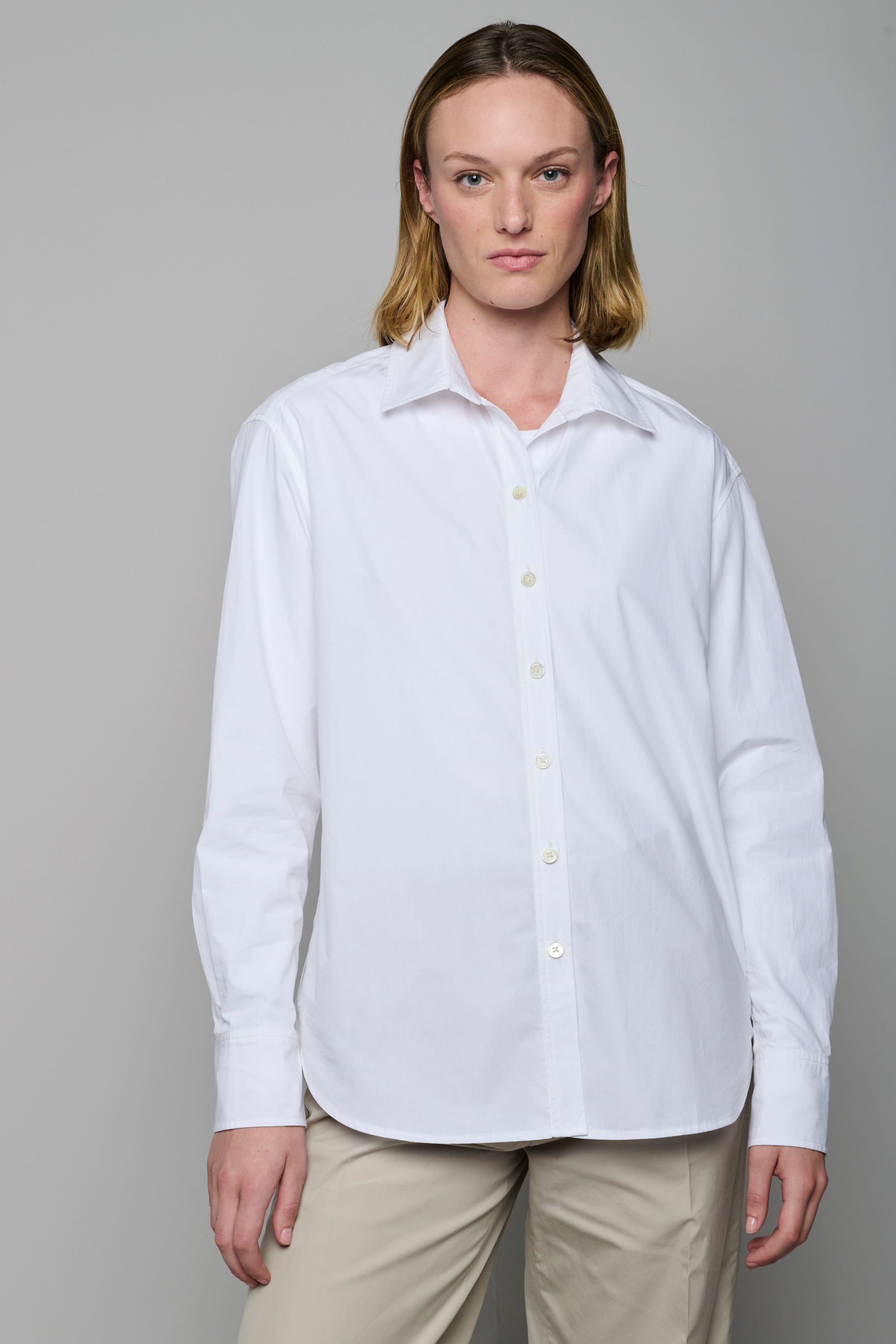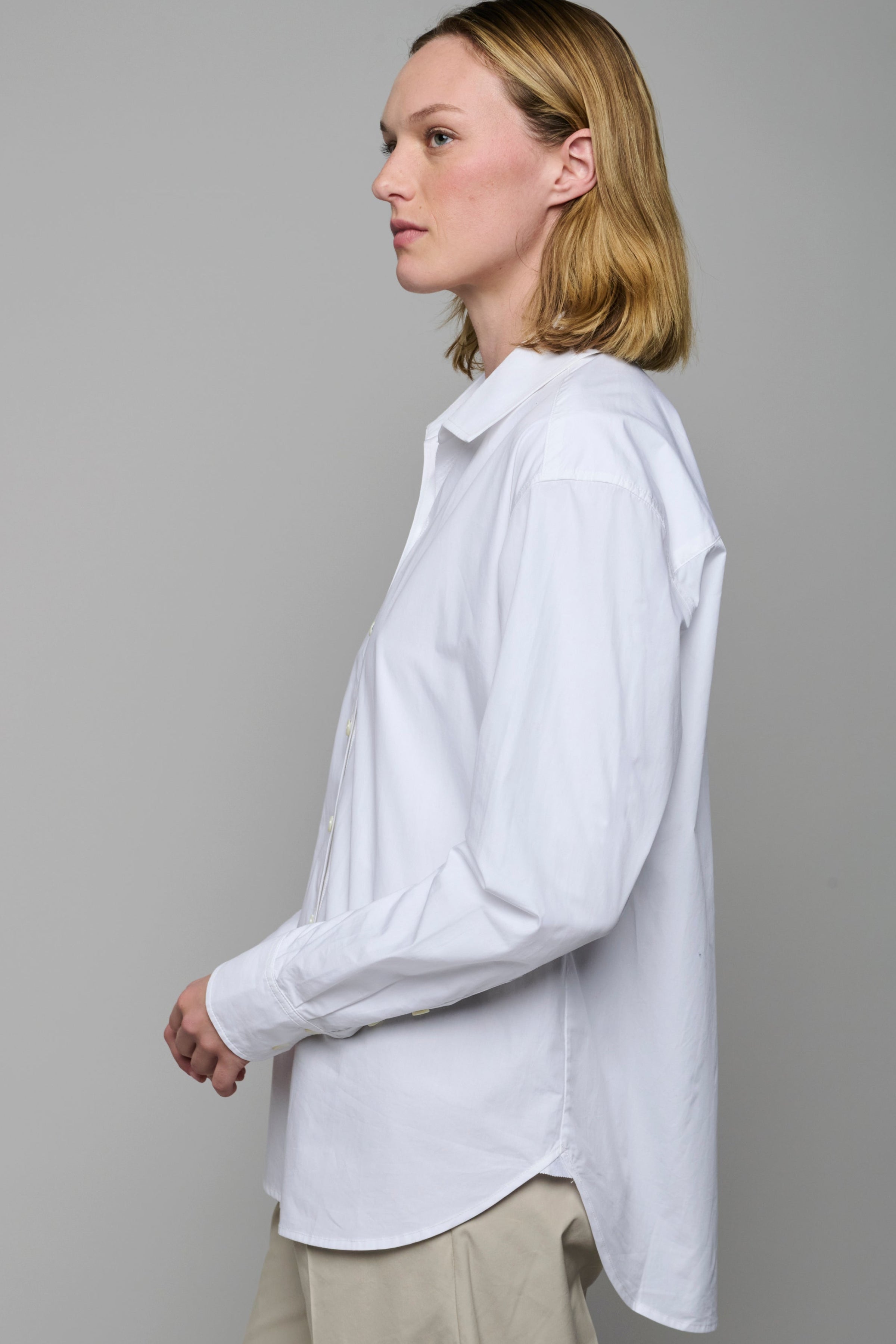 Cotton Poplin Button Up Shirt in White Poplin